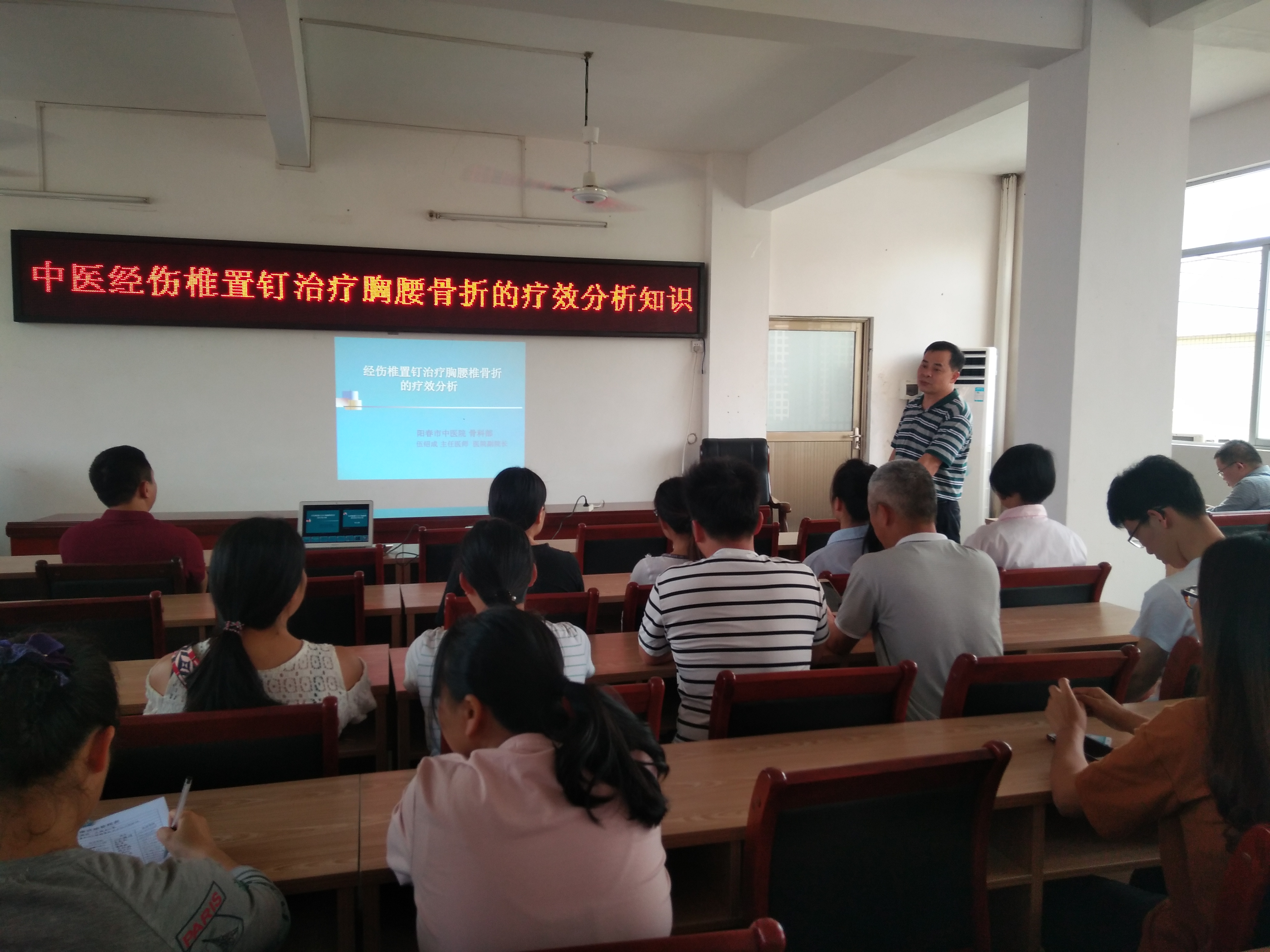 4月3日下午,市中医院伍绍成副院长带领骨科先进骨干医生到八甲镇卫生院讲授继续教育项目“经伤椎置钉治疗胸腰椎骨折的疗效分析”。