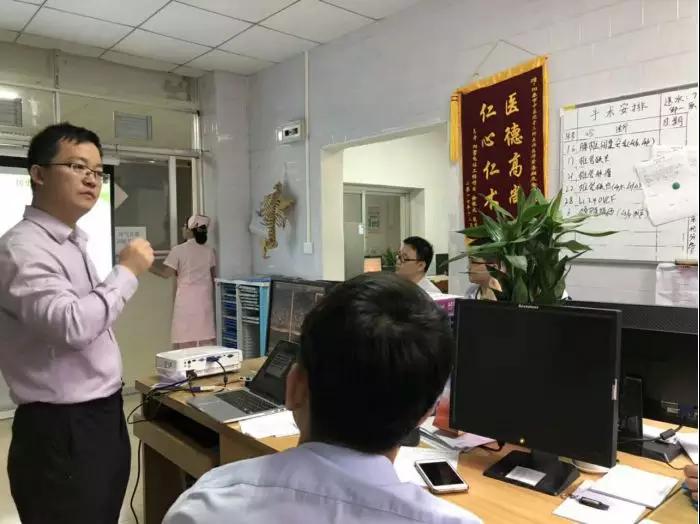 当天早上,江教授就来到我院脊柱微创中心骨三科办公室开展《棍点理筋正骨手法》的课程讲解及培训,江晓兵教授擅长理筋正骨手法治疗脊柱侧弯、颈椎病、腰腿痛等多种脊柱专科常见疾病,他讲述的课程内容及培训的治疗手法于临床工作非常实用,使我院医师受益匪浅。